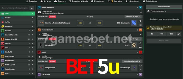 O bet5u oferece uma grande seleção de opções de apostas em e-sports com probabilidades competitivas